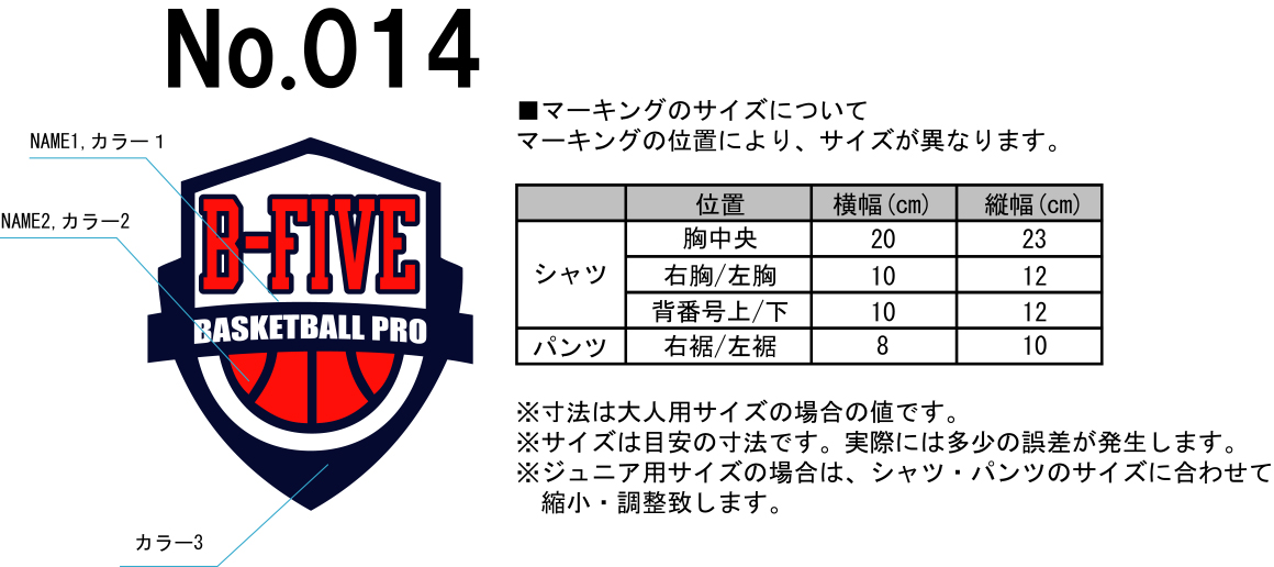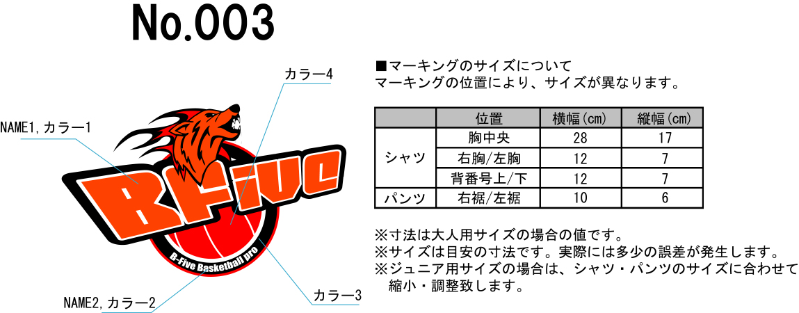 昇華ユニフォームではロゴスタイルのマーキングをプラス700円で行なっております。