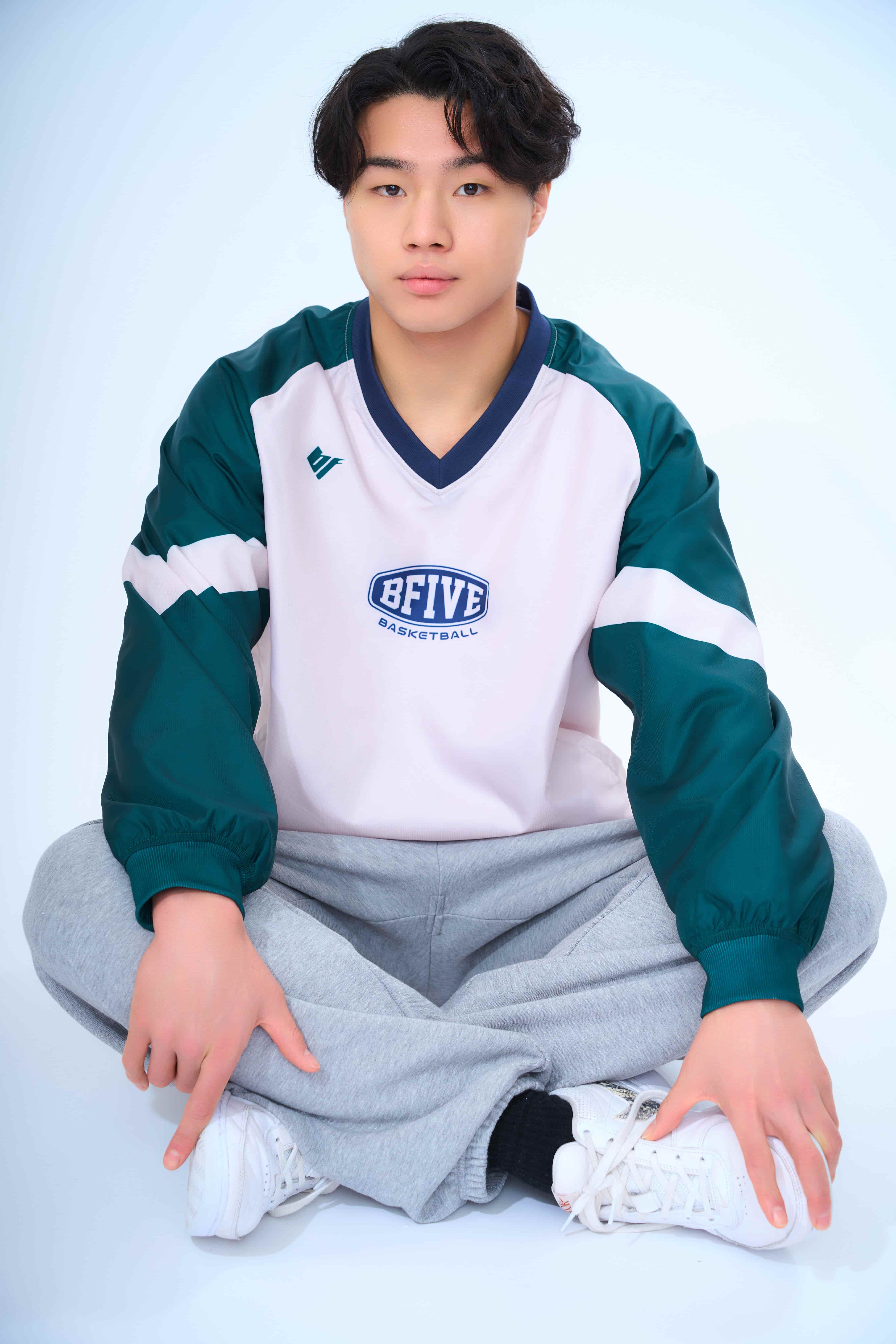 薄いウーブン生地で作られた、軽量で動きやすいバスケットボール用ピステです。裏地にはメッシュ素材を使用し、通気性を確保することで蒸れにくく快適な着心地を実現しました。