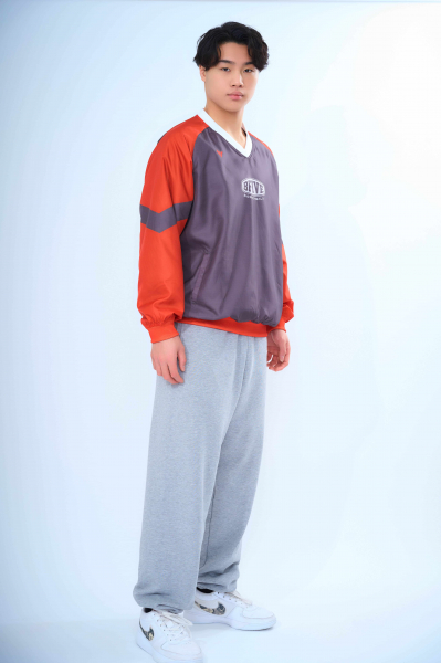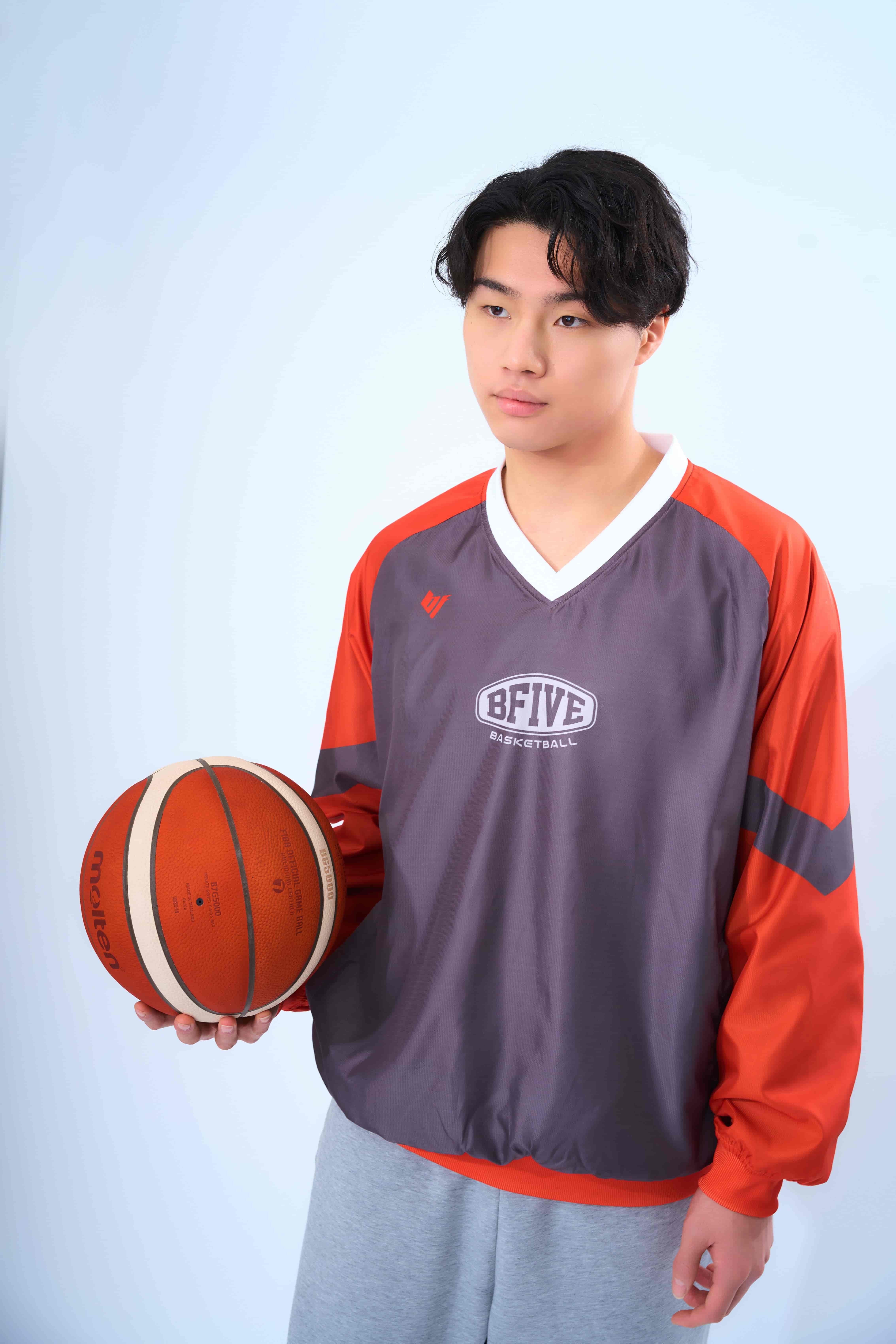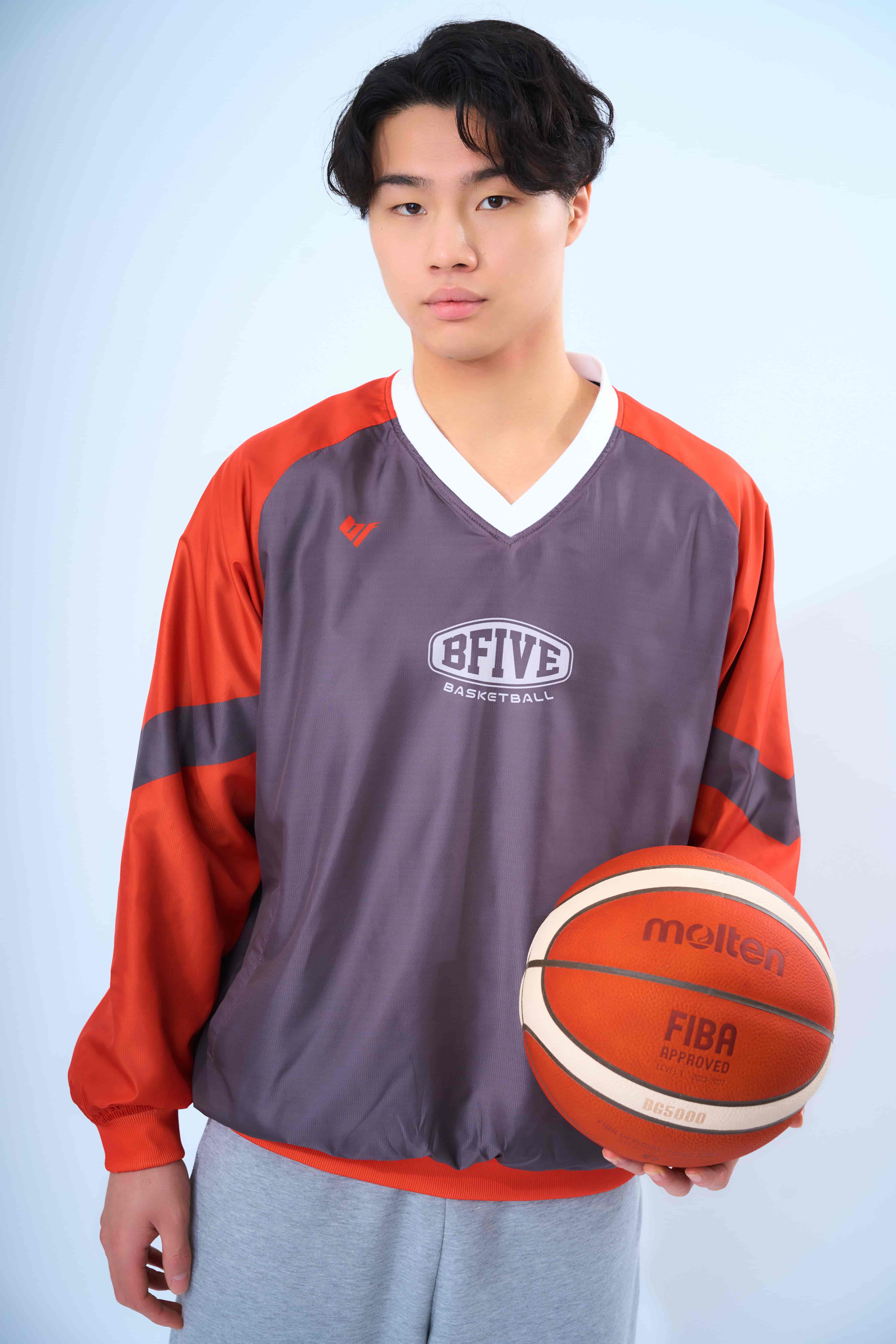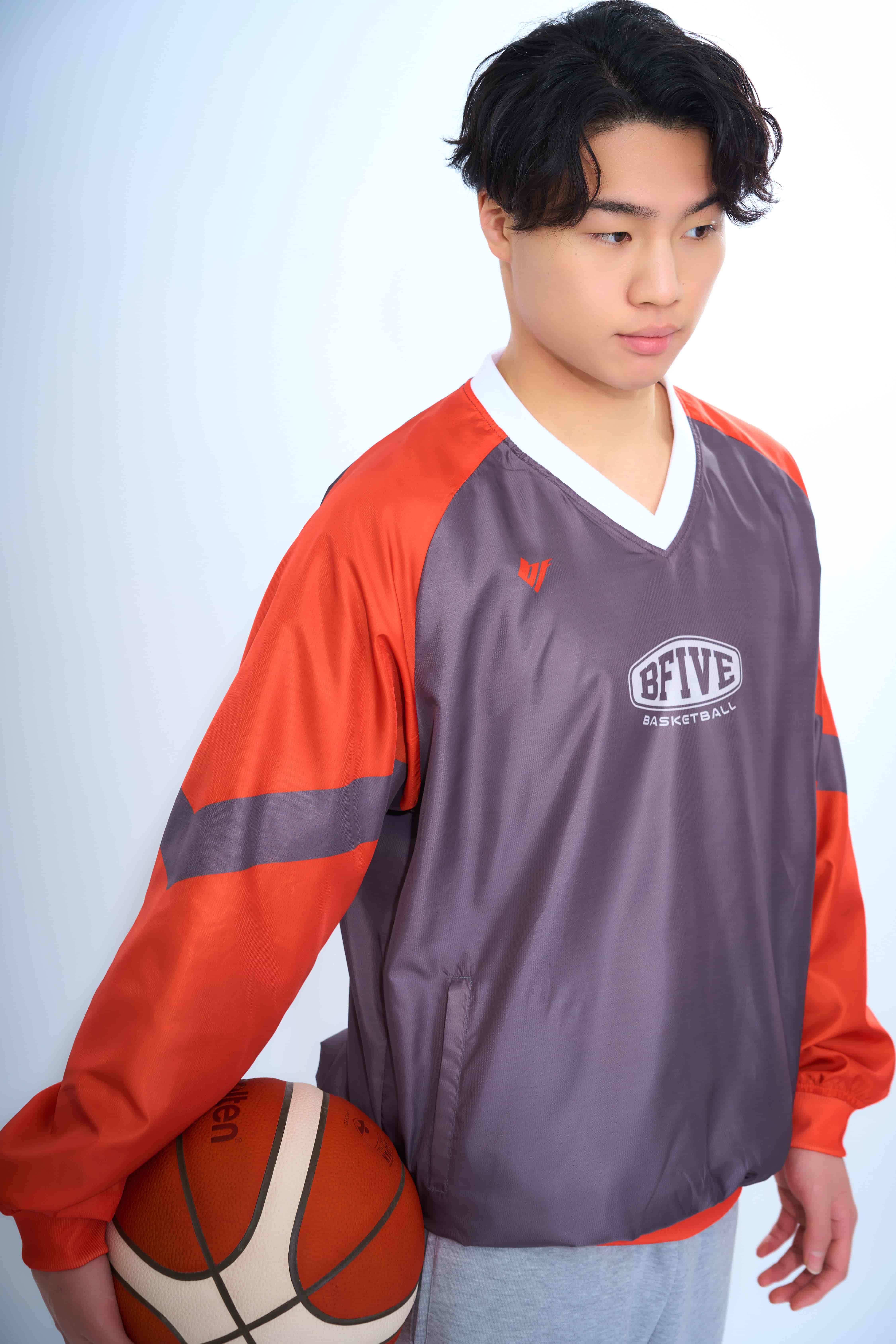 薄いウーブン生地で作られた、軽量で動きやすいバスケットボール用ピステです。裏地にはメッシュ素材を使用し、通気性を確保することで蒸れにくく快適な着心地を実現しました。