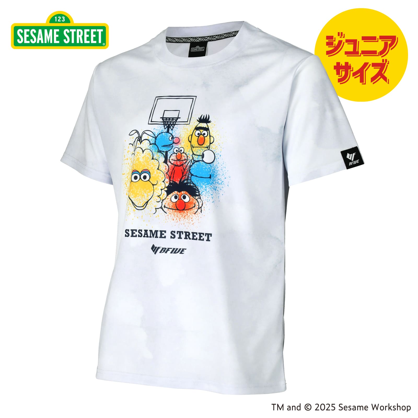 誕生55周年を迎えたセサミストリートのBFIVE Limited Item。バスケットゴールを背景に、セサミストリートの仲間たちが勢揃いしたにぎやかなデザイン。