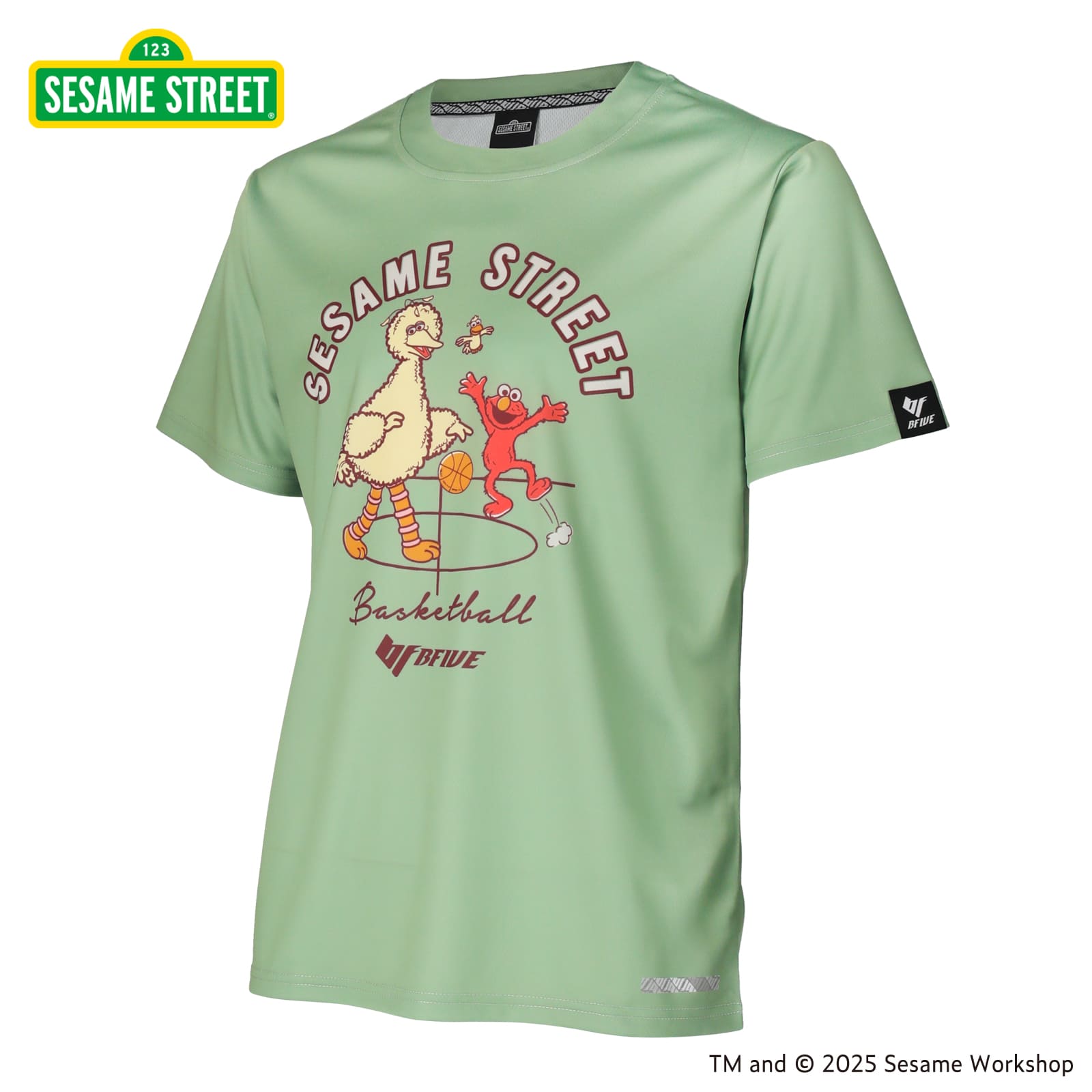 誕生55周年を迎えたセサミストリートのBFIVE Limited Item。バスケを楽しむビッグバードとエルモが描かれた、遊び心満点のグラフィックTシャツ。