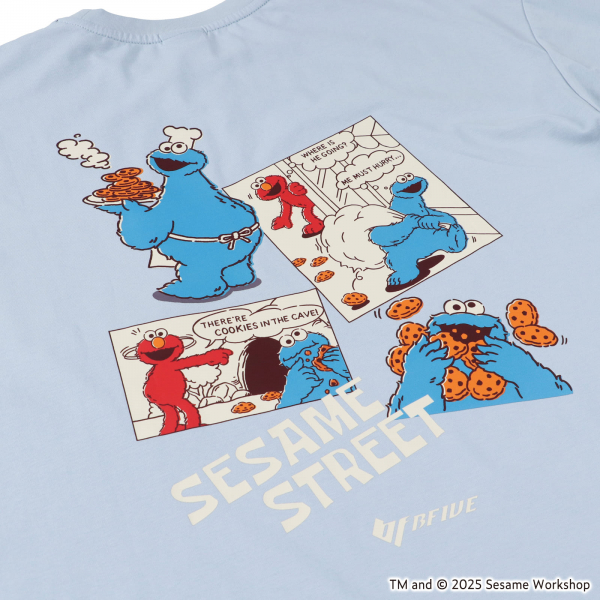誕生55周年を迎えたセサミストリート、秋のBFIVE Limited Item。表情豊かなクッキーモンスターが、まるでショートコミックのように描かれたユニークなバックプリントが印象的。