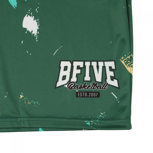 バスパンのパンツ丈が膝上仕様になり登場。スプラッシュアートのような模様が、躍動感と個性を際立たせるデザイン。
