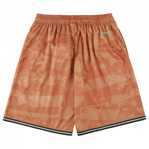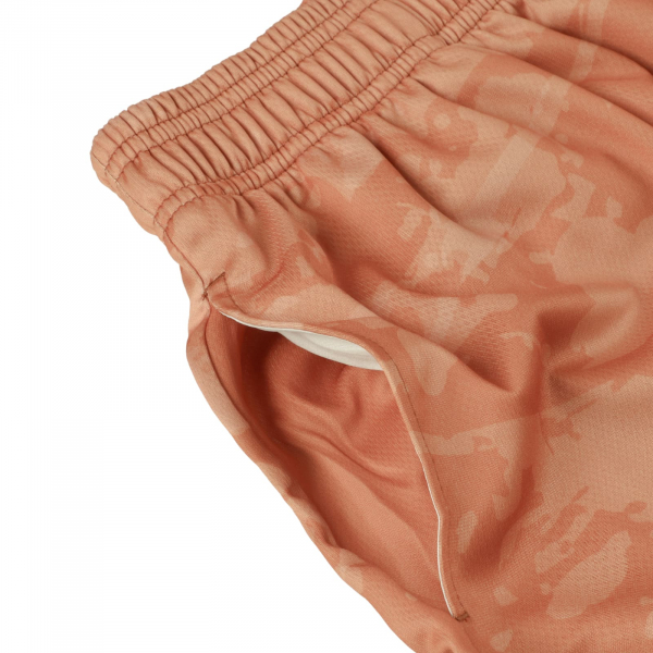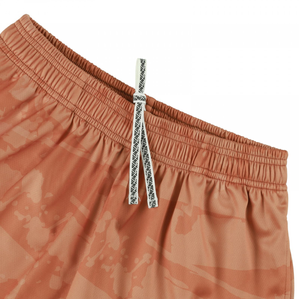 バスパンのパンツ丈が膝上仕様になり登場。スプラッシュ柄を重ねたような陰影が、静かに存在感を放つグラフィックデザイン。