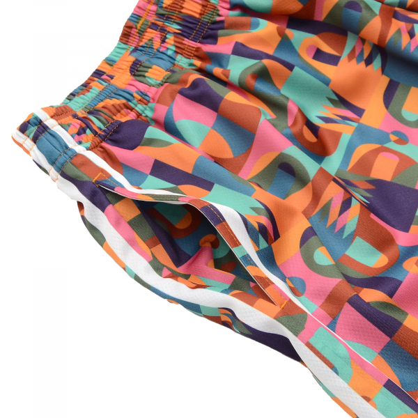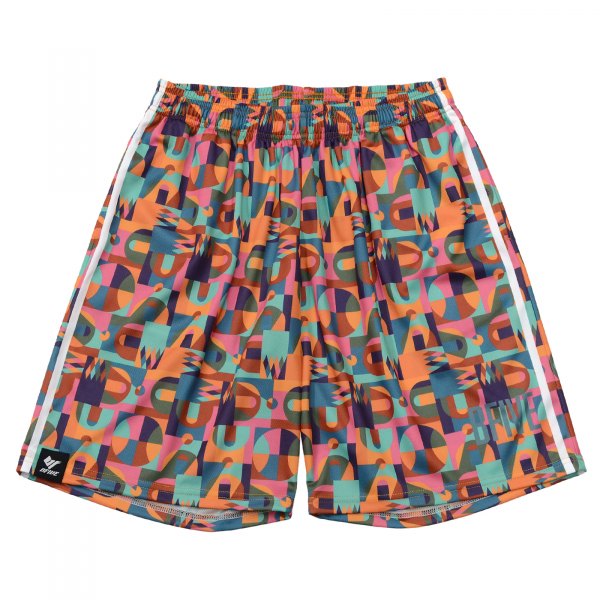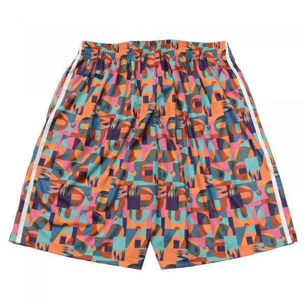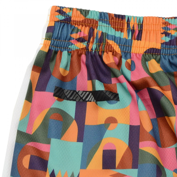 バスパンのパンツ丈が膝上仕様になり登場。カラーモザイクとダンクシルエットが融合した存在感あるグラフィックデザインです。