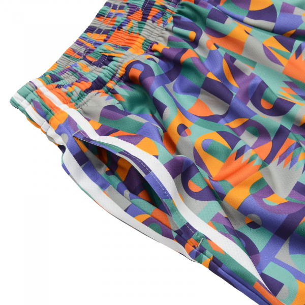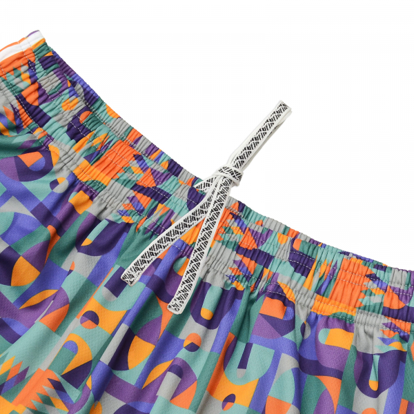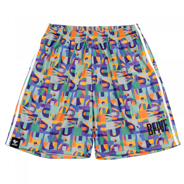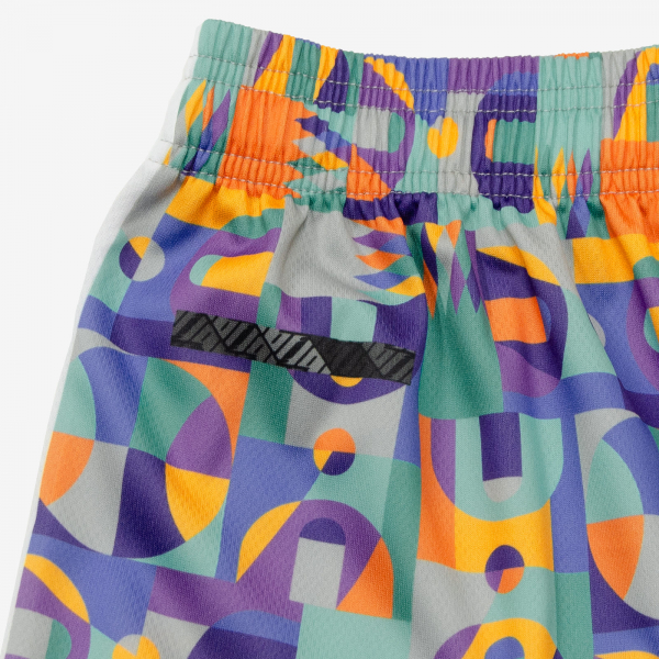 バスパンのパンツ丈が膝上仕様になり登場。カラーモザイクとダンクシルエットが融合した存在感あるグラフィックデザインです。