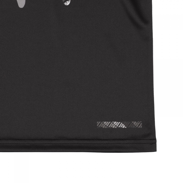 フィット感を重視したジュニアサイズのプラクティスシャツ。プレイヤーの躍動感を表現したシルエットグラフィックで、シンプルながら印象に残る一枚。