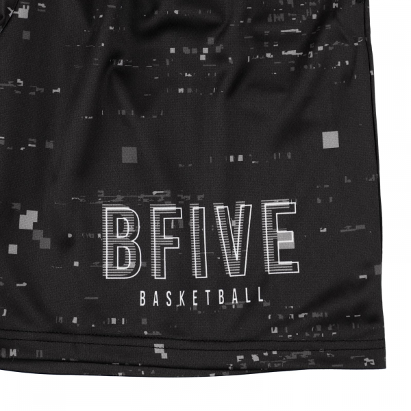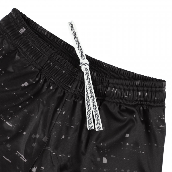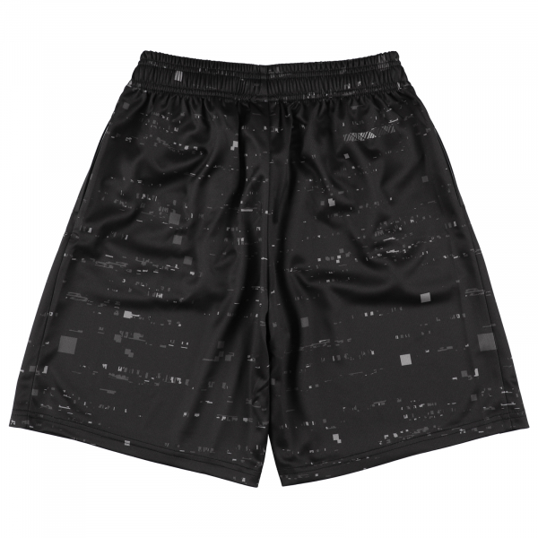 動きやすく速乾性・吸汗性のあるメッシュ素材を使用したジュニアサイズのバスケットパンツ。デジタルノイズをモチーフにしたデザインが、コート上で存在感を放つ一枚。