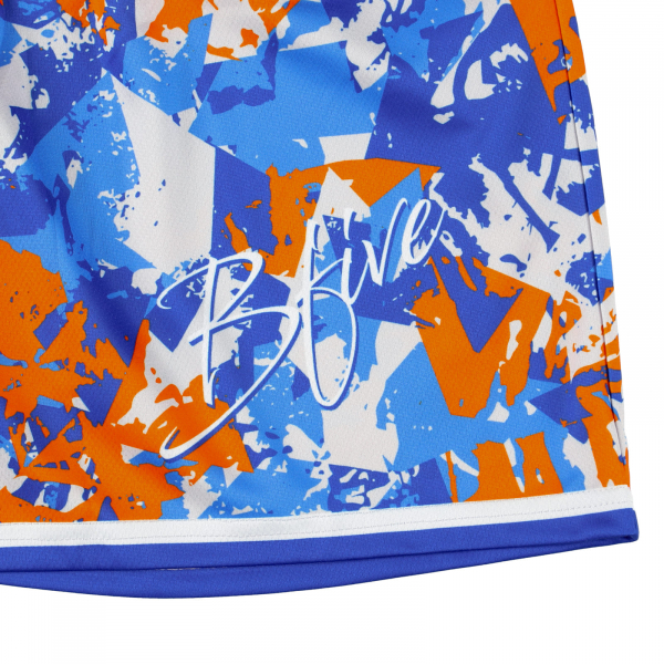 動きやすく速乾性・吸汗性のあるメッシュ素材を使用したジュニアサイズのバスケットパンツ。カモフラージュ調のグラフィックが存在感を放つ、印象に残る一枚。