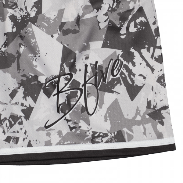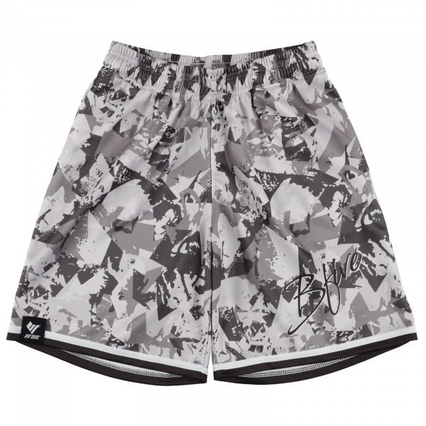 動きやすく速乾性・吸汗性のあるメッシュ素材を使用したジュニアサイズのBFIVE バスケットパンツ。昇華プリントの特性を活かし、柄の入ったデザインが特徴。