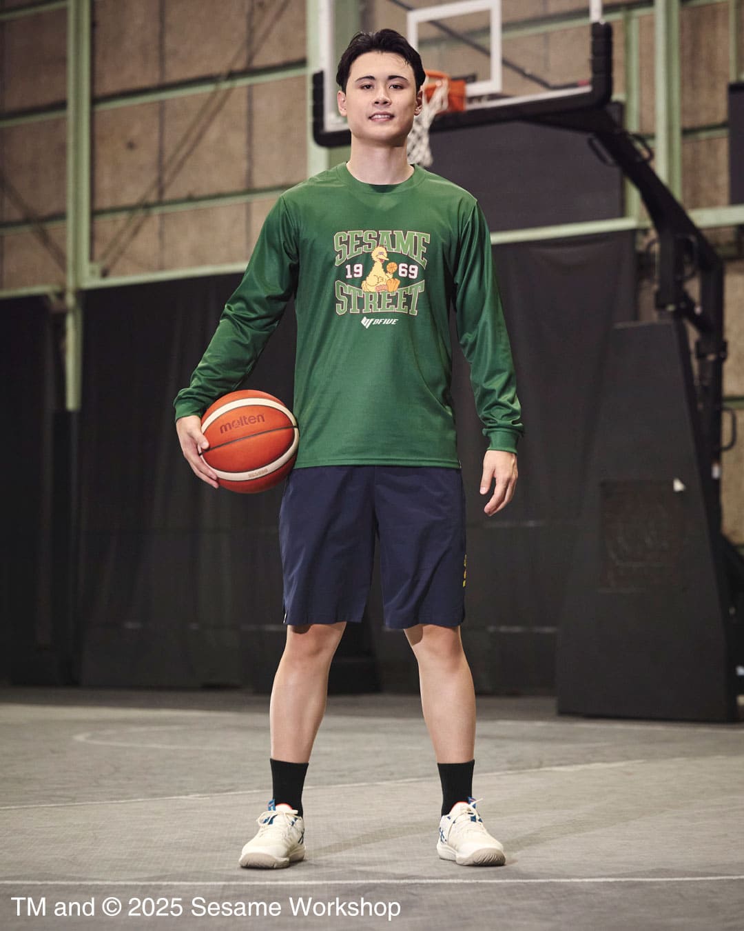 秋冬のトレーニングや私服コーデにも使いやすい長袖で、機能性と遊び心を両立した一枚です。